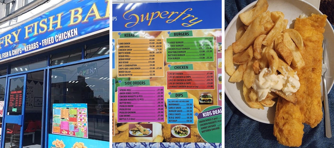 Indulge in delicious fish and chips at Superfry Fish Bar in Swanley. Enjoy affordable prices and great value on favorites like cod, kebabs, and battered sausages. Perfect for families and takeaways! Call us at +44 1322 662048.
